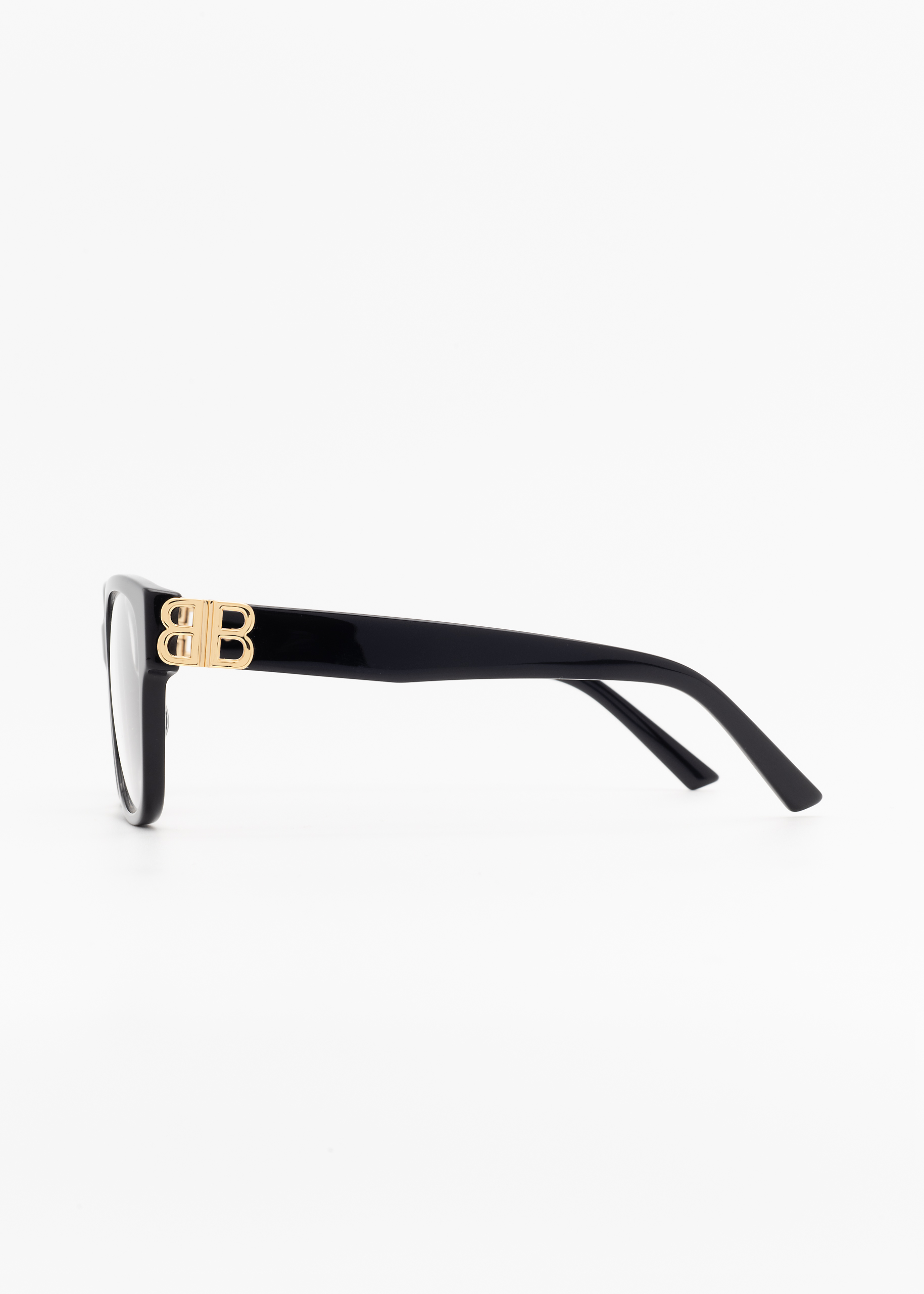 Chiamato così per il suo riferimento all’estetica lussuosa degli anni ’80, take-down commerciale di uno dei concept più ambiti della stagione PE20. Montature a D di ispirazione vintage. Cerniere dorate con logo BB pieghevole e simmetrico che separano le aste affusolate, elemento iconico di tutte le categorie Balenciaga. Colori classici come nero e avana e stagionali come rosa lattiginoso.