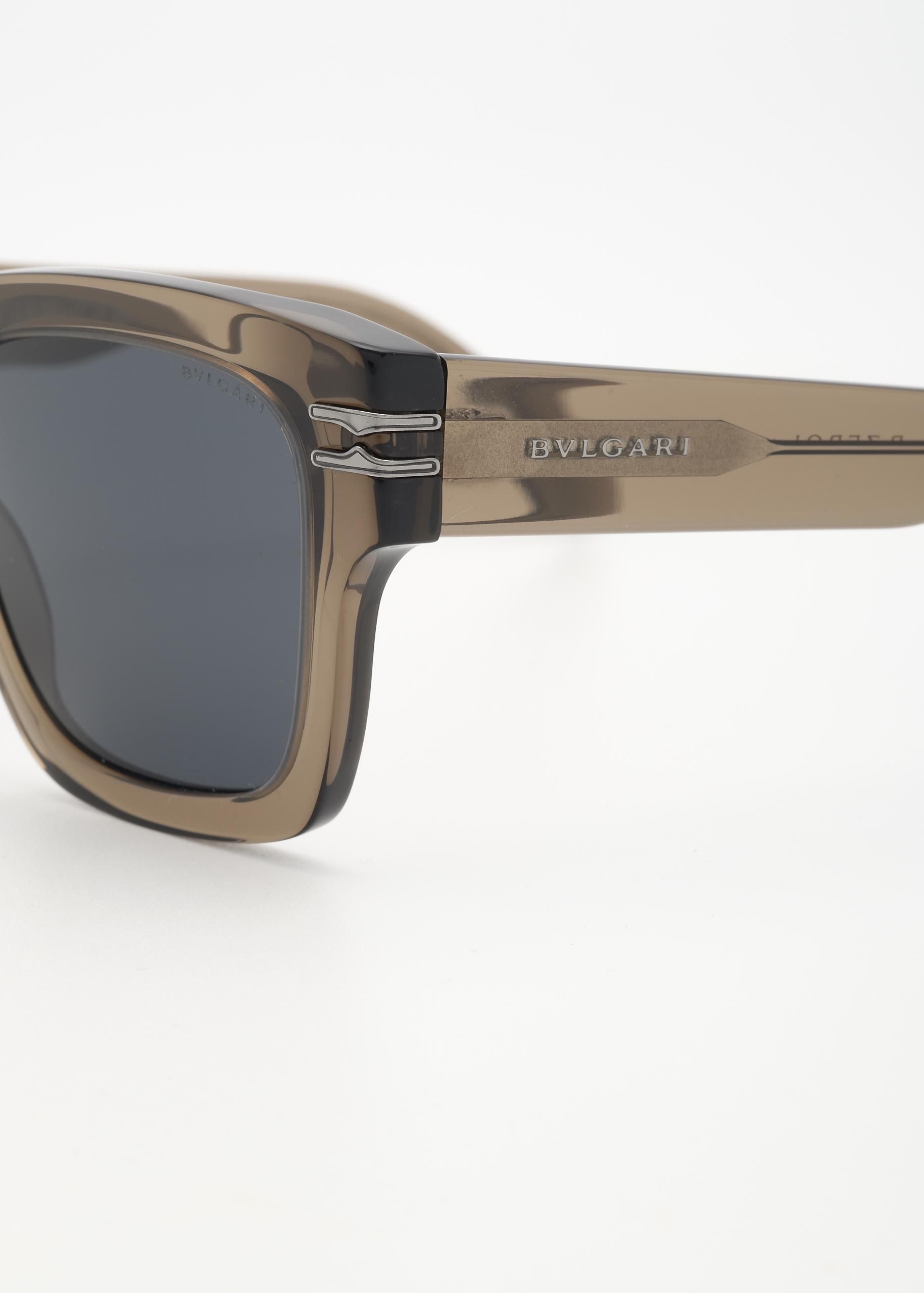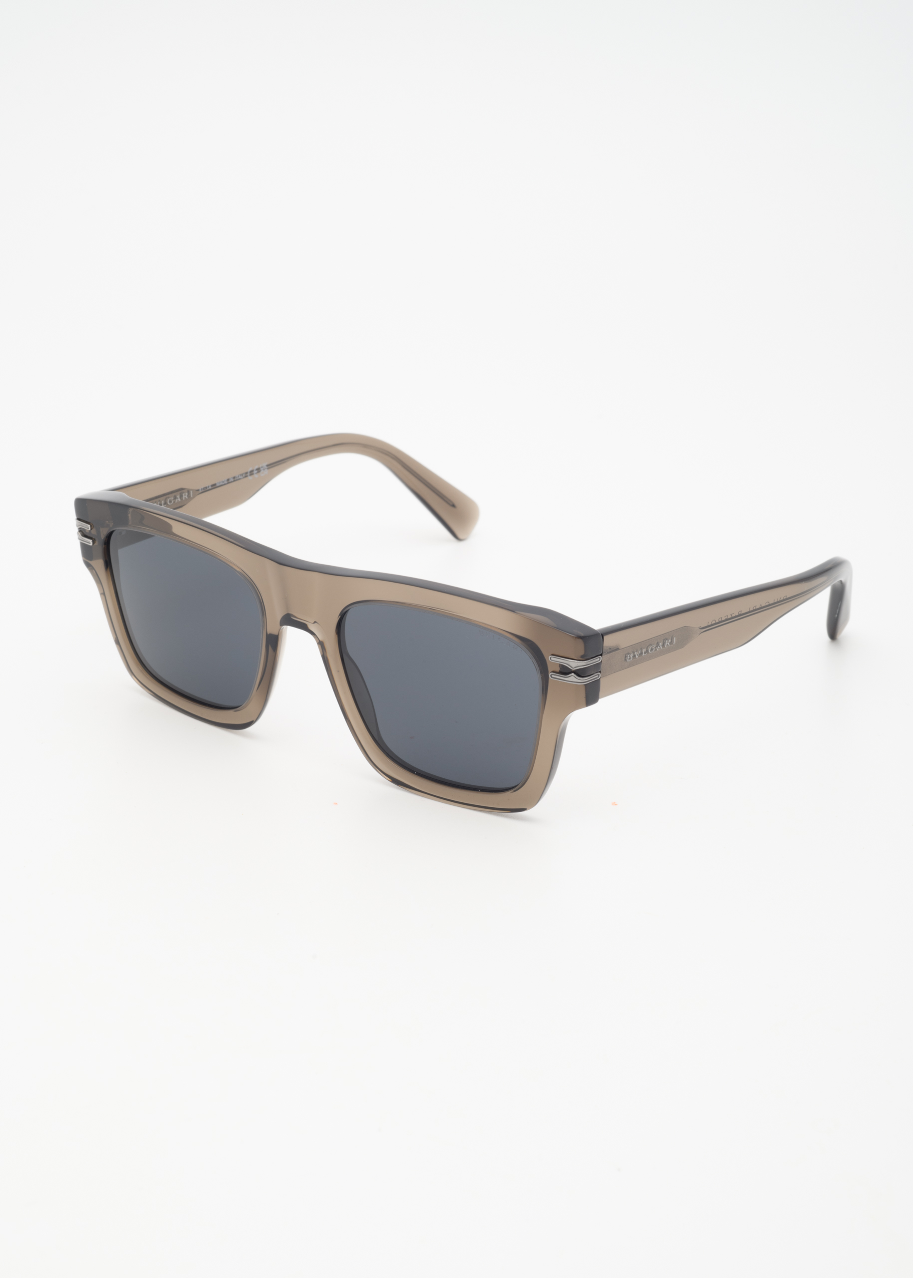 Occhiali da sole B.zero1 con montatura squadrata in acetato marrone e lenti blu. Ispirato ai gioielli della collezione, l’iconico motivo B.zero1 che adorna la montatura dona al modello un tocco di distintiva eleganza.