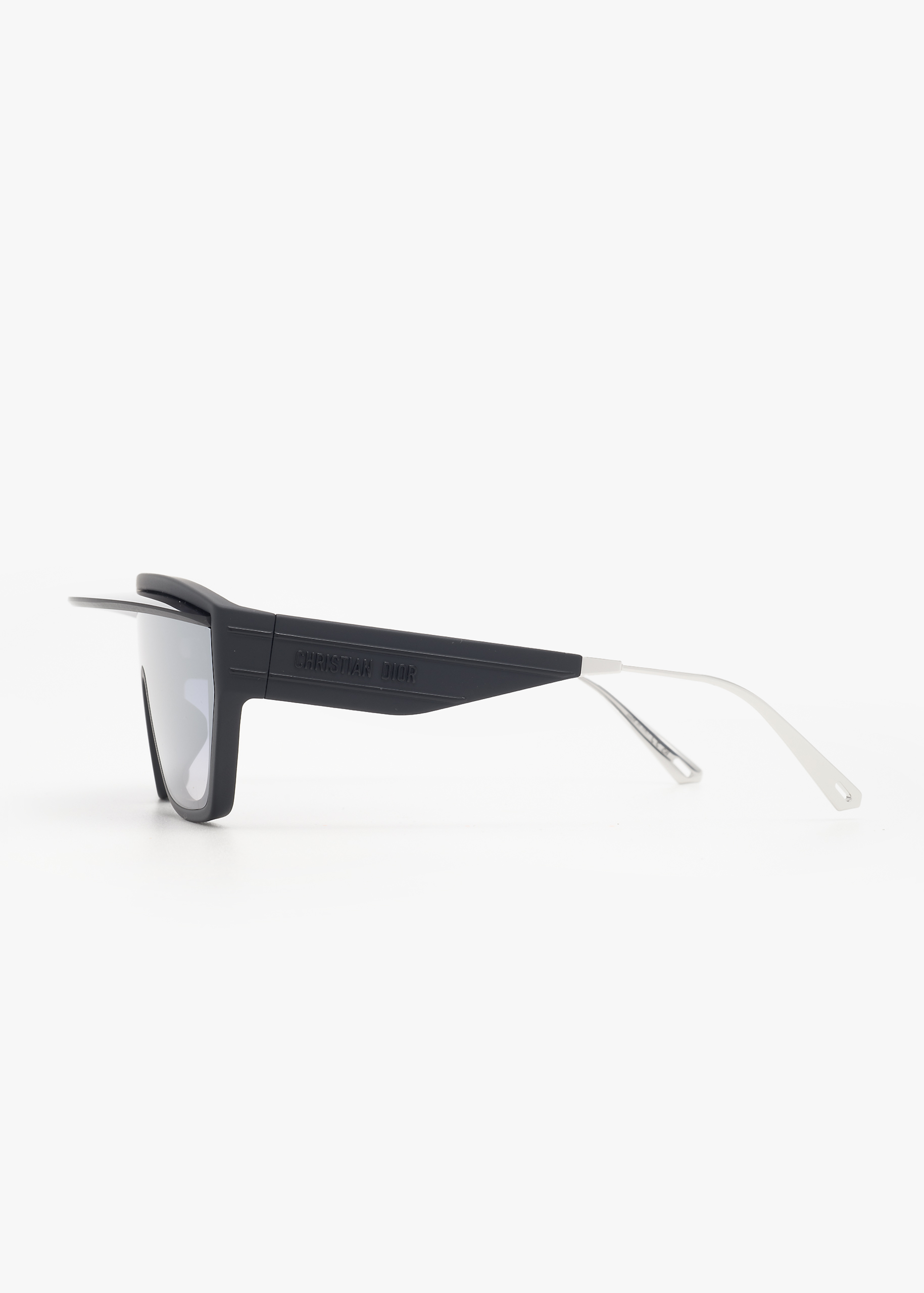 Questi occhiali da sole a mascherina DiorClub M7U presentano una forma moderna di ispirazione sportiva. Realizzata in acetato nero opaco e metallo con finitura color argento, questa audace montatura è impreziosita da uno spoiler in vetro grigio sfumato effetto specchio per creare affascinanti giochi di riflessi. Le aste sono ornate da dettagli grafici nero lucido e dalla firma Christian Dior. Dotato di lente a mascherina sfumata e specchiata grigia, questo modello completerà ogni look con un tocco contemporaneo.