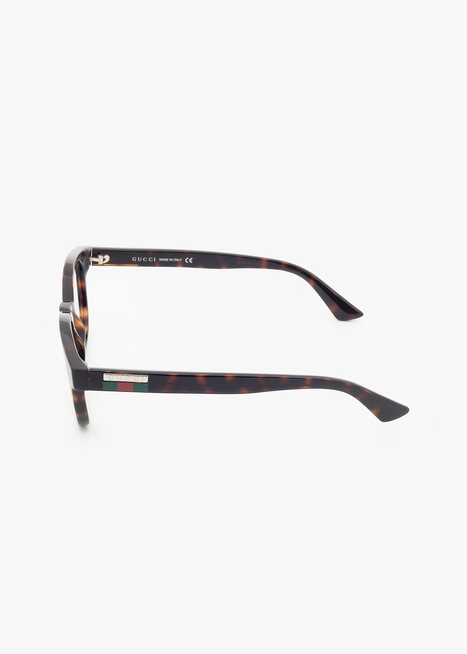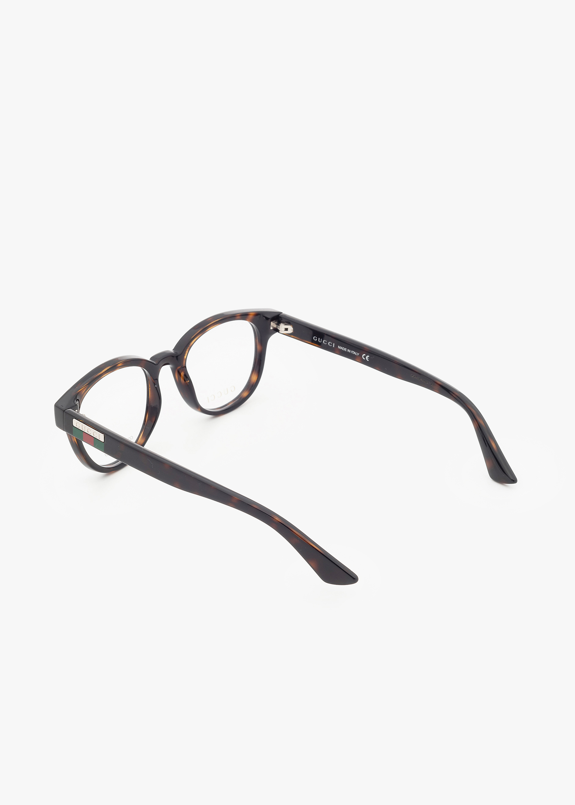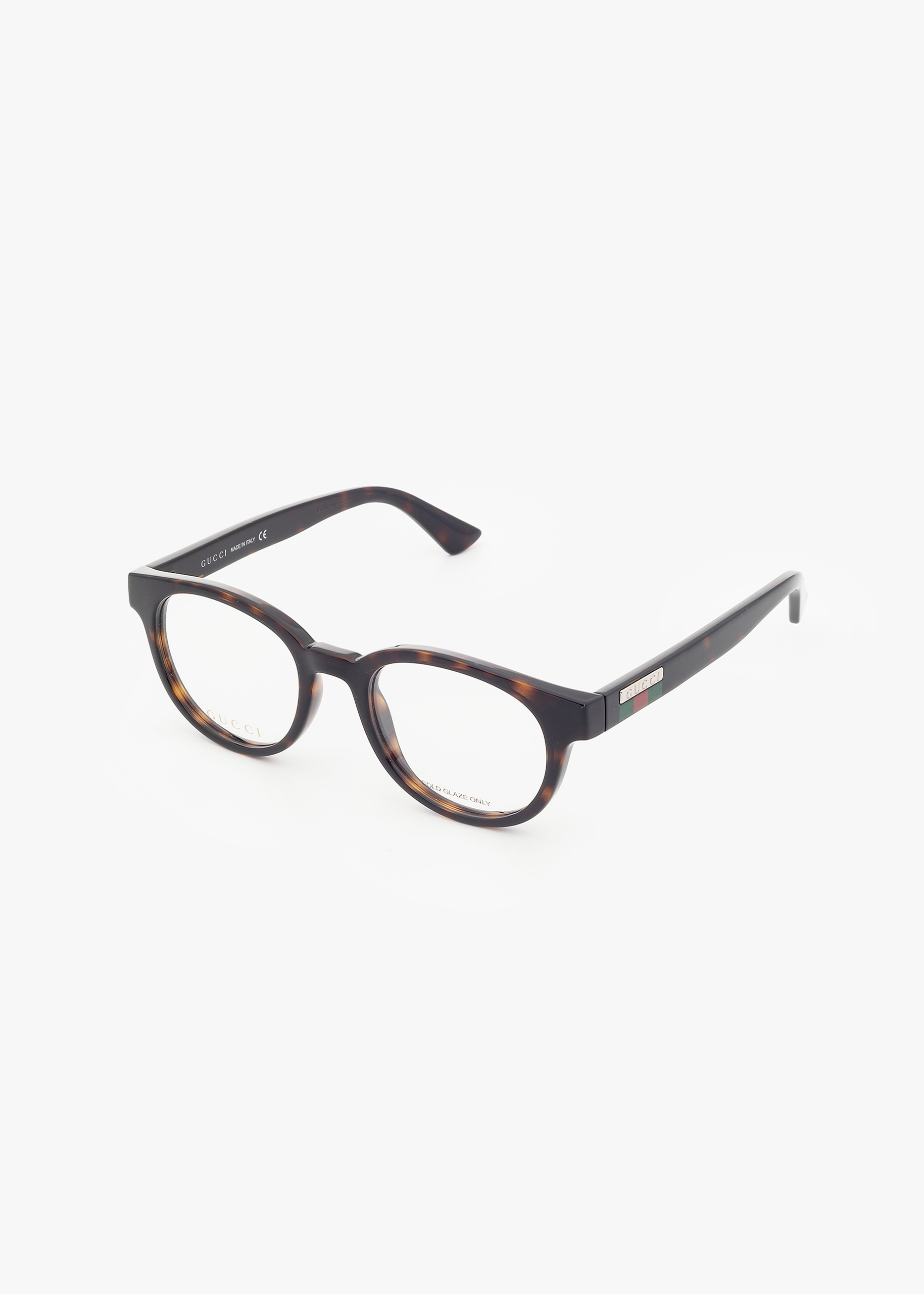 Modello iconico e intramontabile della Maison, facile da indossare e ideale per l’uomo amante dello stile classico. Montatura dalla forma tonda. Logo con scritta Gucci su una targhetta metallica dorata e dettaglio Web sulle aste.