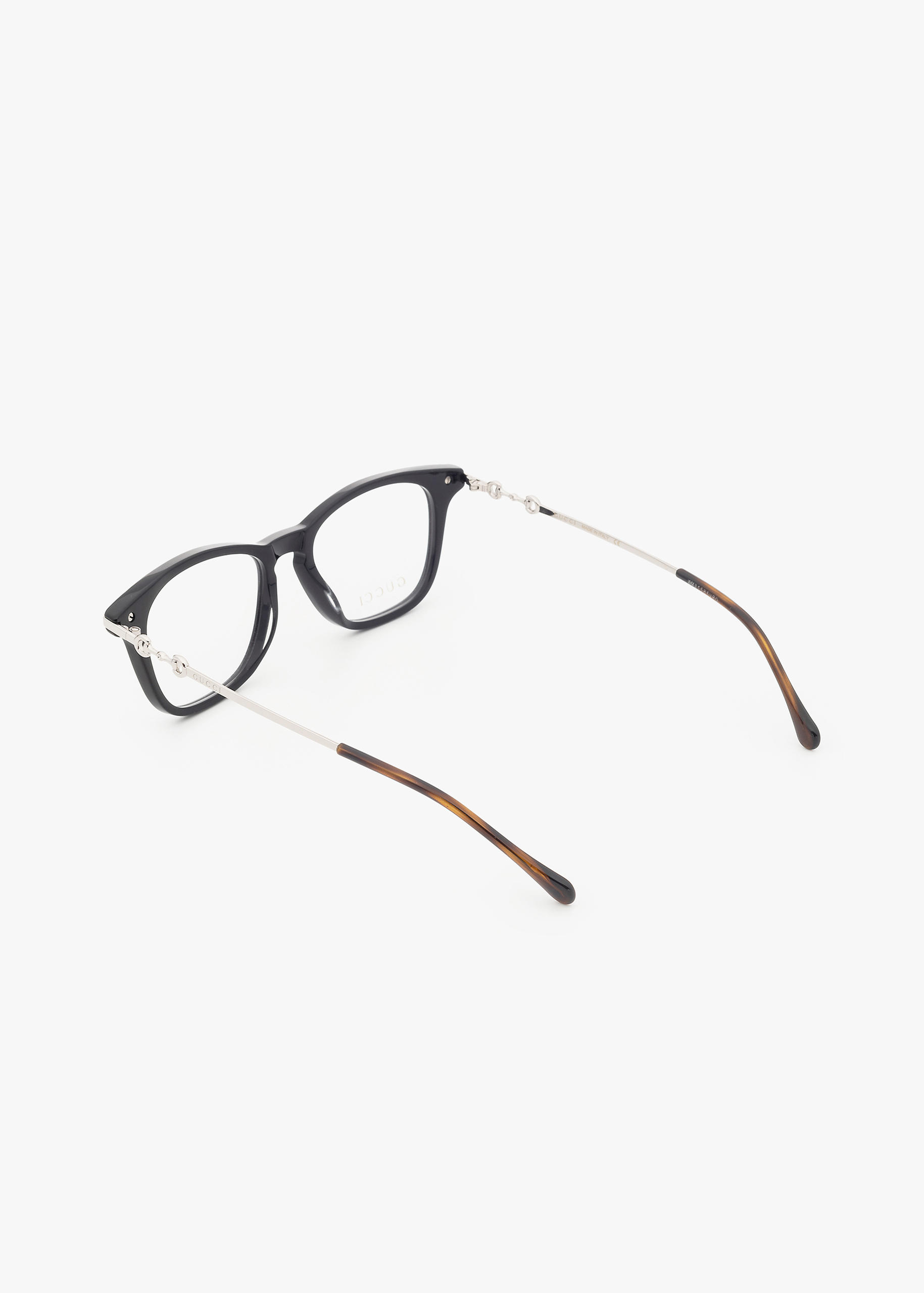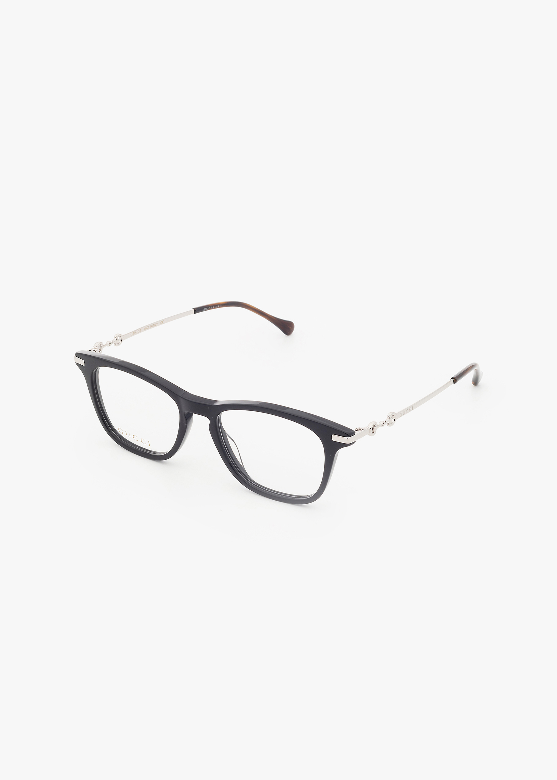 Per la prima volta l’iconico Morsetto Gucci è reinterpretato nella categoria Eyewear per un tocco di eleganza classica. Il logo è presente nei modelli in metallo, plastica e combi, che vantano tutti lo stesso stile raffinato. Montatura dalla forma rettangolare con angoli arrotondati in acetato e aste in metallo. Aste impreziosite dal dettaglio Morsetto e da un discreto logo con scritta Gucci inciso. Il modello è disponibile in una palette classica ed elegante di tonalità avana e nero.