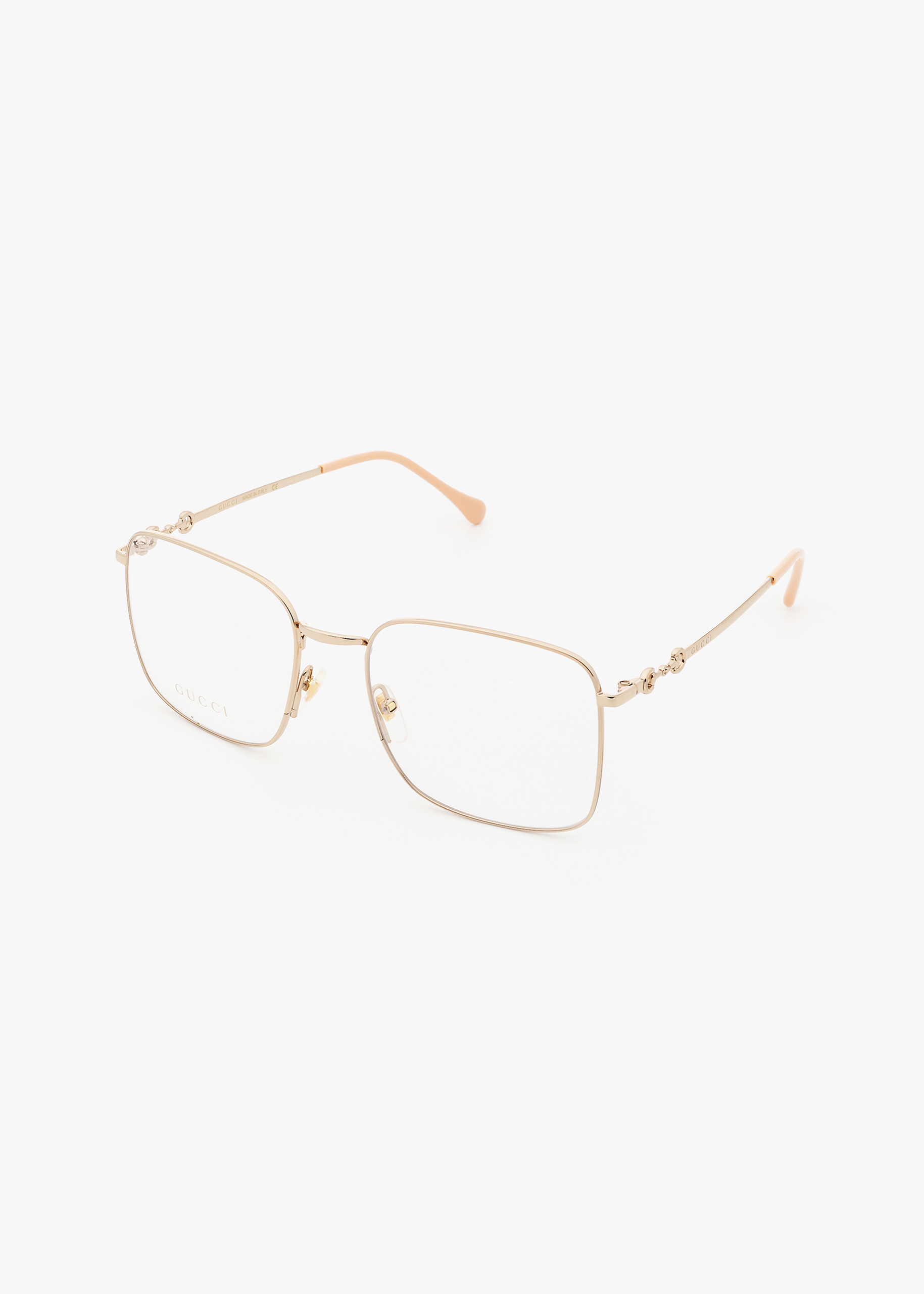 Per la prima volta l’iconico Morsetto Gucci è reinterpretato nella categoria Eyewear per un tocco di eleganza classica. Il logo è presente nei modelli in metallo, plastica e combi, che vantano tutti lo stesso stile raffinato. Montatura dalla forma squadrata oversize in metallo, per un look sofisticato. Aste impreziosite dal dettaglio Morsetto e da un discreto logo con scritta Gucci inciso.