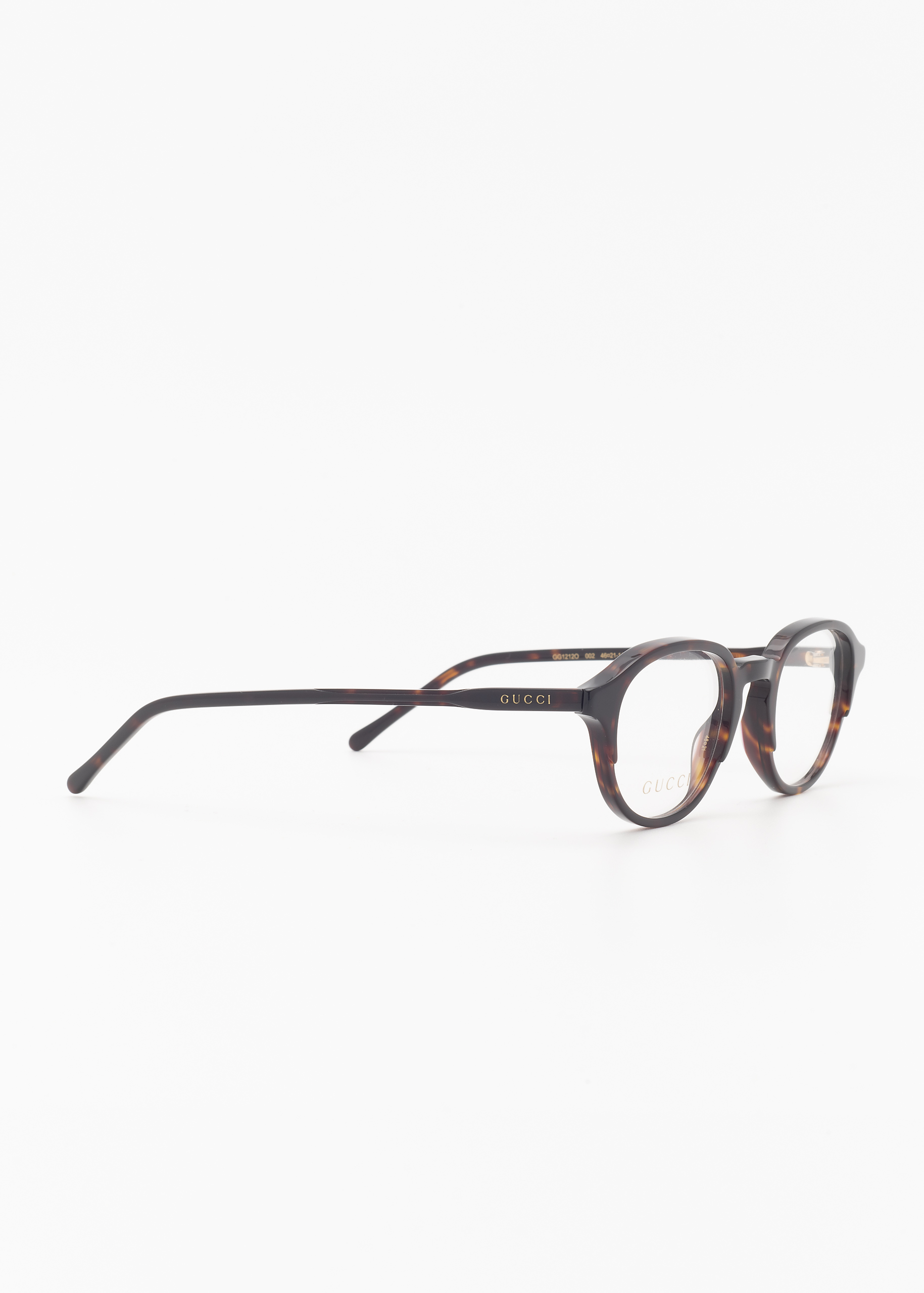 Questa nuova famiglia di ispirazione vintage è basata sul concept best seller in acetato leggero. Questo modello Pantos è caratterizzato dalla fresatura in alto e basso rilievo del logo con scritta Gucci su entrambe le aste. La palette cromatica spazia da toni delicati e sfumati a colori accesi.