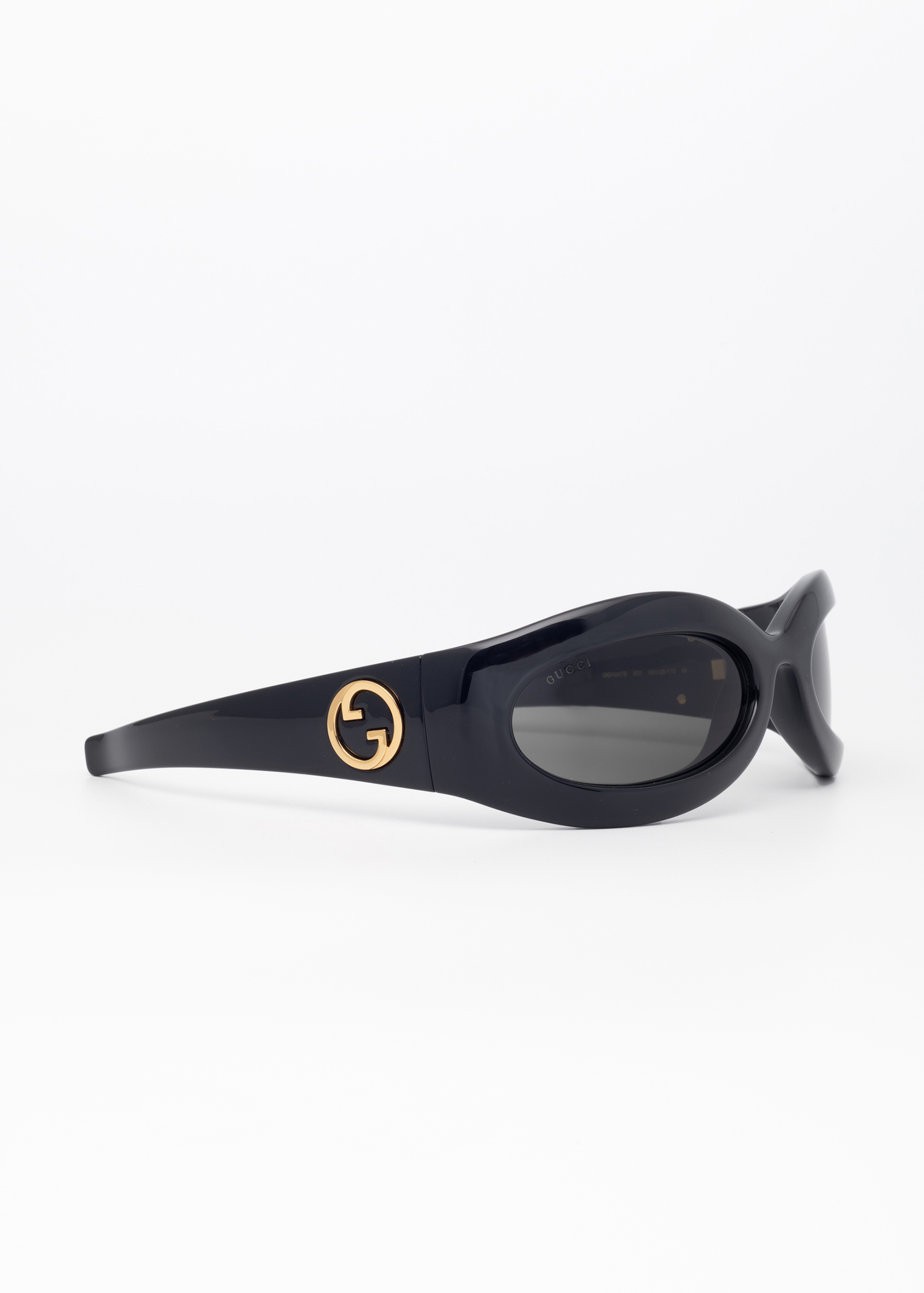 Montatura dalla futuristica forma avvolgente. Il nuovo logo in metallo con firma Gucci impreziosisce le aste.
