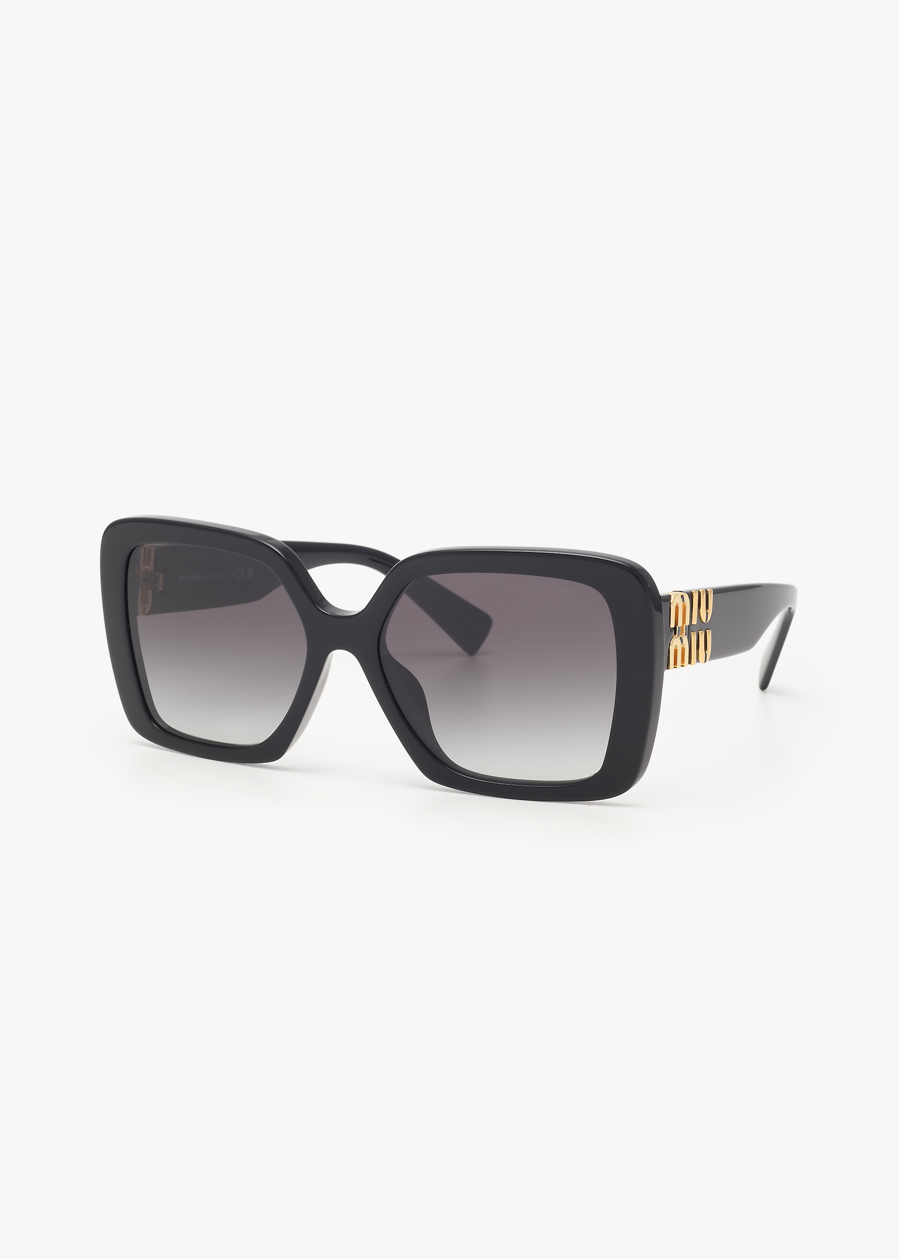 Occhiali da sole in acetato caratterizzati da una montatura oversized. L’ampio frontale squadrato presenta profili bold che gli conferiscono una femminilità contemporanea. Il ricercato logo verticale Miu Miu è integrato nella cerniera delle aste lineari.