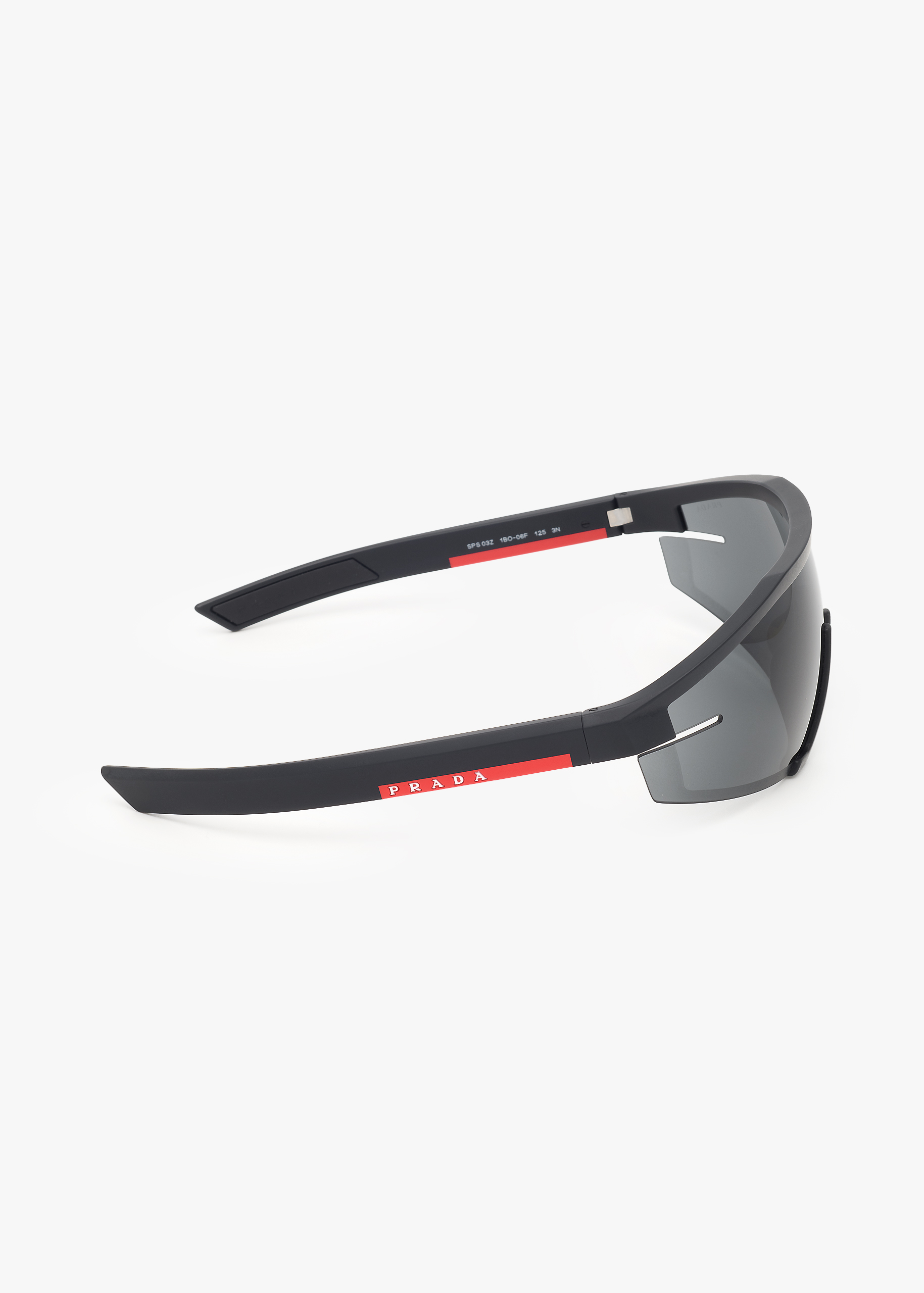 Con cerniere bi-stabili, lenti con trattamento idrofobico e sistema di ventilazione, Prada Linea Rossa offre un modello da sole ad alte prestazioni. Una montatura leggera dal design aerodinamico e aste a tripla iniezione, ideale per fare sport senza rinunciare a lusso e stile.